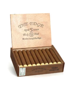 Rocky Patel The Edge Corojo Toro features a Cuban-seed Corojo wrapper with aged ligero fillers from Honduras and Nicaragua, delivering earthy, peppery, and coffee flavours.